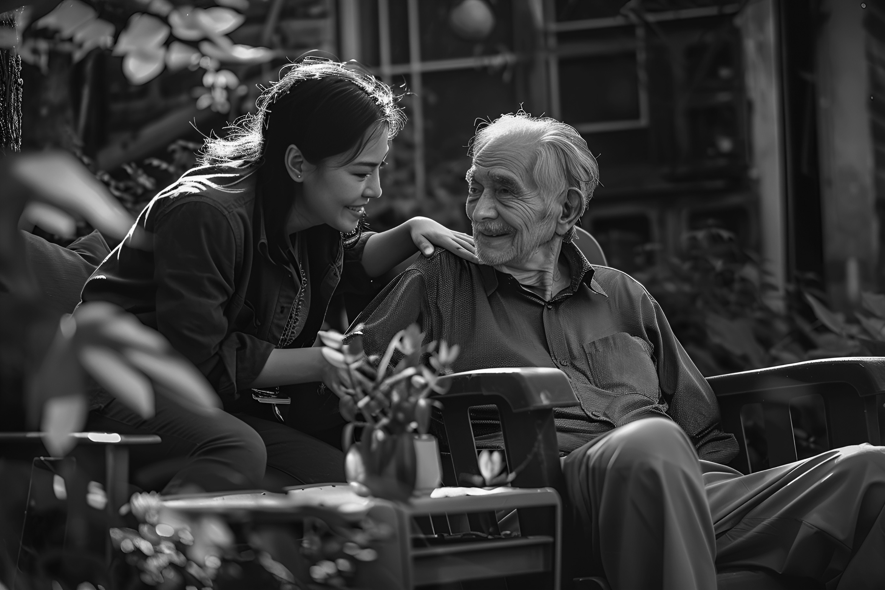 Perawat lansia dengan sikap telaten, empati tinggi, dan tanggap.